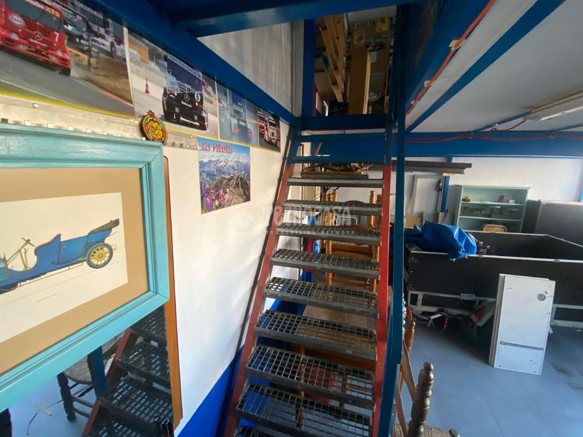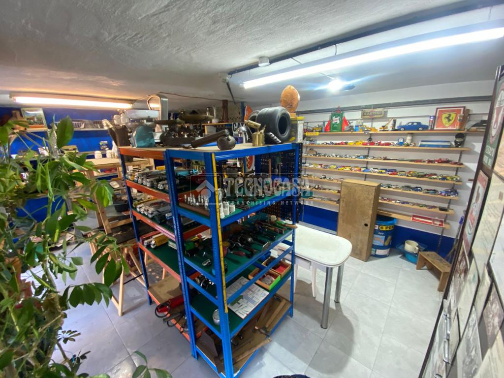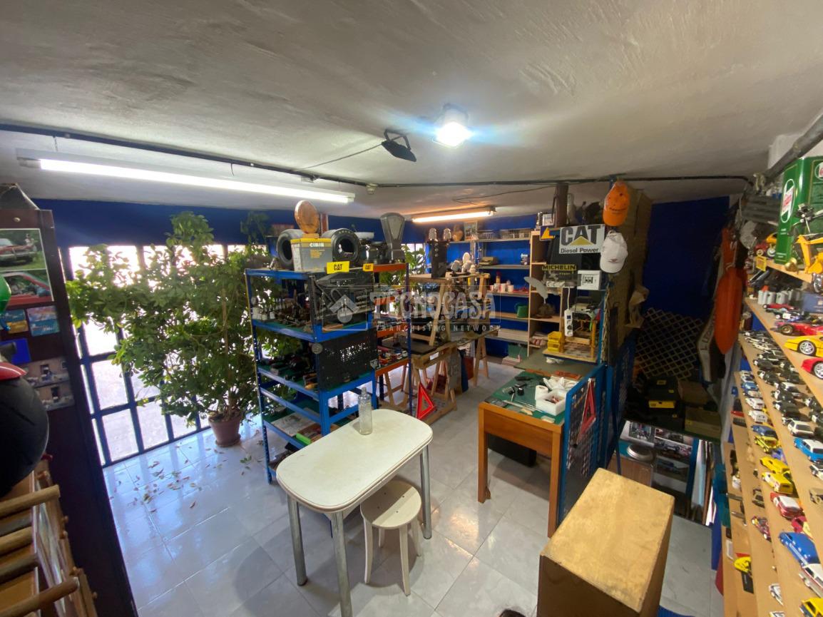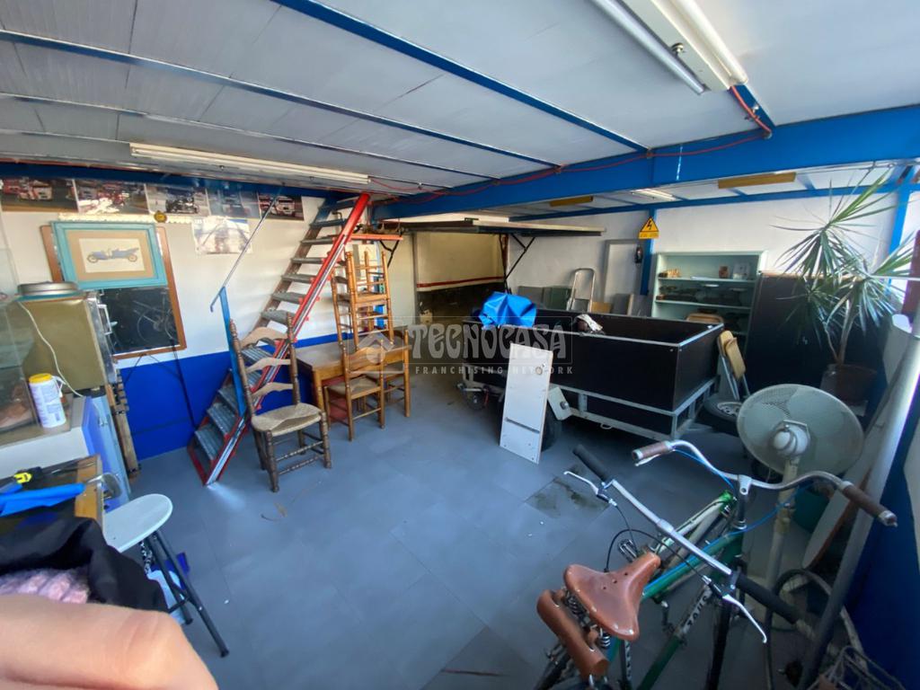 El garaje dispone de acceso a una parcela con persiana privada, con espacio suficiente para vehículo pequeño y zona dicional destinada a trastero o área de trabajo. Incluye una entreplanta perfectamente aprovechada, actualmente acondicionada como zona de almacenamiento con estanterías, mobiliario y muy buena iluminación natural.