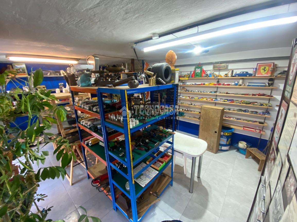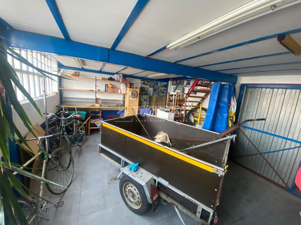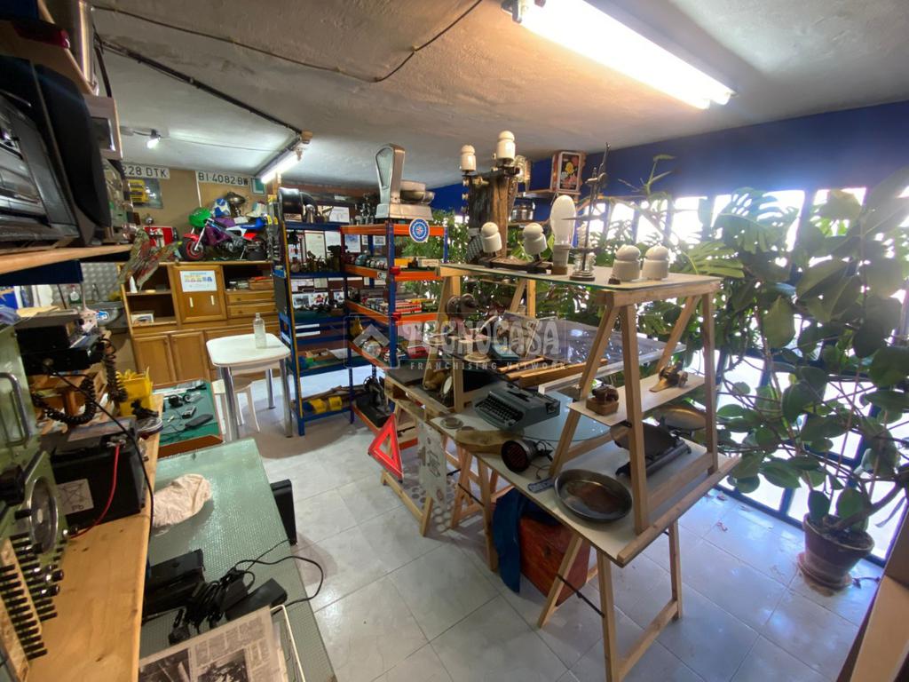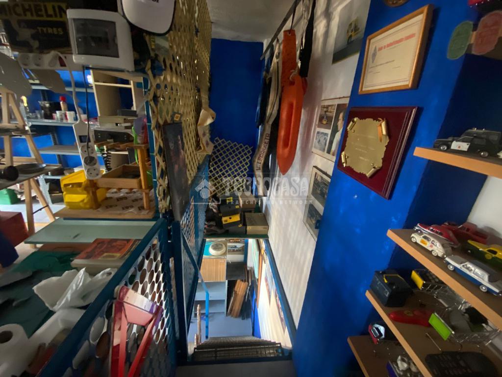 El garaje dispone de acceso a una parcela con persiana privada, con espacio suficiente para vehículo pequeño y zona dicional destinada a trastero o área de trabajo. Incluye una entreplanta perfectamente aprovechada, actualmente acondicionada como zona de almacenamiento con estanterías, mobiliario y muy buena iluminación natural.